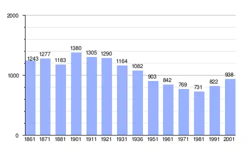 Gráfica de evolución demográfica de Dusino San Michele entre 1861 y 2001 |