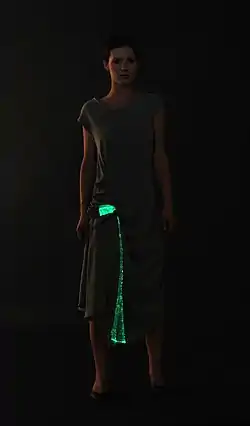 A finales del siglo XIX, a medida que la sociedad evolucionaba y se acostumbraba a los aparatos eléctricos, diseñadores e ingenieros comenzaron a combinar la electricidad con la ropa y la joyería, desarrollando una serie de collares, sombreros, broches y trajes iluminados y motorizados.[8][9] Por ejemplo, a finales del siglo XIX, una persona podría contratar a mujeres jóvenes que portaban vestidos de noche tachonados de luces de la Electric Girl Lighting Company para brindar entretenimiento en una evento de cóctel.[10]