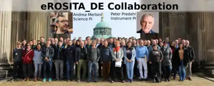 eROSITA se desarrolló en el Instituto Max Planck de Física Extraterrestre en colaboración con institutos en Bamberg, Hamburgo, Potsdam y Tubinga. El investigador principal del instrumento es Peter Predehl. El científico principal del proyecto es Andrea Merloni. El consorcio alemán eROSITA cuenta con miembros de institutos de toda Alemania, pero también de institutos internacionales, y ha establecido colaboraciones con telescopios terrestres para observaciones de seguimiento de los millones de fuentes que eROSITA detectará.