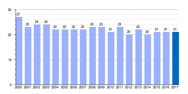 Gráfica de evolución demográfica de Echagüen[1] entre 2000 y 2017 |