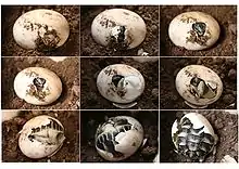 Para facilitar la rotura de la cáscara del huevo, algunos animales ovíparos cuentan con una pequeña y aguda protuberancia conocida como diente de huevo.[2][3]