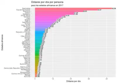 La Economía de África se basa en el comercio, la industria y los recursos naturales. Para el 2019, aproximadamente 1.320 millones de personas habitan en 55 países diferentes.[1]. África es uno de los continentes más pobres y peor gestionados. Aunque algunas regiones han mejorado en los últimos años, de los 175 países estudiados en el Human Development Report de Naciones Unidas en 2003, 25 países africanos se encuentran en el ranking de aquellos con peor índice de desarrollo humano.
