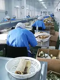 En esta área destaca la industria conservera de Santoña, de la cual la primera noticia moderna conocida es una fábrica de escabeche ya en funcionamiento y con perspectiva de construcción de una nueva en 1876; ya en 1251 Laredo obtuvo privilegios de Alfonso XI para producir salazones.[23] Este subsector se extendió en la última década del XIX con la edificación de una gran fábrica conservera en Isla, llamada La Calderona. En 1887 nace la asociación que dio lugar a Hijos de Carlos Albo, la empresa conservera local más importante. La fábrica conservera más moderna es Conservas Rueda, inauguradas sus nuevas en 2010 tras el incendio de 2007, y con 23 puestos de trabajo.[24] Estas fábricas se dedicaban al escabeche y a la salazón. Hoy los productos más conocidos de las conserveras locales son las anchoas de Santoña (filetes de anchoa) y el bonito del norte Un dato revelador es que de las 57 fábricas conserveras existentes en 1998 en Cantabria, el área del estuario de Limpias reunía la mayoría, con un 48% en Santoña, un 16% en Laredo y un 10% en Colindres.[23] A pesar de todo el sector ha caído debido al menor número de capturas (según las épocas); en 1970 se estima que la conserva de anchoa en Cantabria representaba el 90% del consumo español y el 50% del consumo mundial.[23]