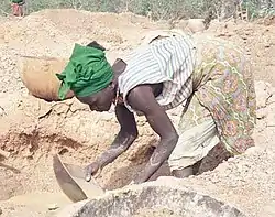 ![]() Mujer trabajando en la extracción de oro. | ||