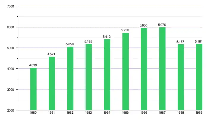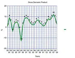 Gráfica del crecimiento del producto interno bruto de Panamá 1980-1989 |