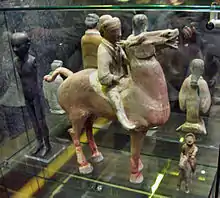 Los talleres del gobierno Han producían artículos funerarios comunes, de lujo e incluso artísticos, tales como las figuras de cerámica y las baldosas de las tumbas con las que se adornaban las paredes de las tumbas bajo tierra.[69] Los talleres imperiales eran operados por el Ministro Administrativo, cuyo ministerio controlaba el tesoro y las finanzas privadas del emperador.[70]
