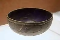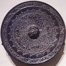 Los lacados Han eran fabricados por productores privados al igual que en talleres del gobierno.[73] Cientos de trabajadores podían ser empleados para trabajar en sólo un artículo de lujo, como una copa o mamparas lacadas.[74] Algunos lacados simplemente estaban gravados con el nombre del clan de la familia propietaria. Otros, estaban inscritos con los títulos del dueño, el tipo específico de vasijas, sus capacidades, el día, mes y año exacto de su fabricación (según el nombre de la era china y sus calendarios lunisolares), los nombres de los supervisores que estuvieron a cargo de la producción y los nombres de los trabajadores que los hicieron.[75] Incluso algunos artículos de hierro fabricados durante la época del monopolio tenían inscripciones con la fecha en que habían sido fabricados y su taller.[76] Calibradores de bronce de la Dinastía Han, usados para mediciones precisas, también llevan inscrito el día, el mes y el año de su fabricación.[77] Los lacados Han con la sello imperial del emperador han sido encontrados mucho más allá de las regiones de la capital Han por arqueólogos modernos, en lugares como Qingzhen (en Guizhou), Pionyang (en Corea del Norte), y Noin Ula (en Mongolia).[78]