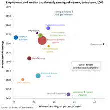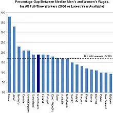 - e.g., Bergmann, Barbara R. (April 1974). «Occupational Segregation, Wages and Profits When Employers Discriminate by Race or Sex». Eastern Economic Journal 1 (2): 103-110. See also male-female income disparity in the United States.