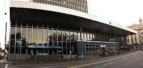 Edificio que es finalmente inaugurado en 1976 y se encuentra ubicado sobre la principal avenida de Montevideo, la Avenida 18 de Julio, frente a la Plaza de los Treinta y Tres Orientales, ocupando una manzana entera, delimitada por la Av. 18 de julio, y las calles, Minas, Guayabos y Magallanes.
