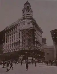 Posee dos subsuelos, planta baja y 8 pisos altos, con un torre que en su cúpula posee una linterna a 56 metros de altura. Es de estilo academicista francés y está profusamente ornamentado, destacándose su ochava cilíndrica en el cruce de la Diagonal Norte (Avenida Presidente Roque Sáenz Peña) y la calle San Martín, adornada con pilastras de orden jónico, al igual que el resto de la fachada.