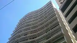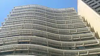 La ondulación de la parte traseira fue ejecutada siguiendo en suma dos principios: la unión de la barroco al modernismo, muy presente en la obra niemeyeriana; y proteger los apartamentos contra los rayos solares vespertinos, formando una especie de parasol, juntamente con la utilización de los brises. Sin embargo, esta función dejó de ser completamente esencial, ya que la construcción posterior de más edificios alrededor redujeron su exposición directa al sol.[12]