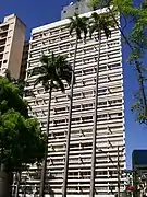 Situado en la Rua Irmã Serafina, 919, ocupa un planta de 1 569,80 m² en formato trapezoidal, con el frente recto y la parte posterior ondulada, guardando semejanza en esta última con otro proyecto hecho por el arquitecto en esa época: el Edificio Copan, en São Paulo. En el total, son 11 153,42 m² de área construida, guardando 8 metros de espacio en el frontal (Calle Hermana Serafina) y 15 metros con la parte posterior (Calle Coronel Rodovalho). De esa forma, Oscar Niemeyer buscó equilibrar la de importancia las dos caras del edificio.[2]
