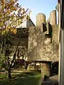 - Detalle del muro curvo de la caja de escaleras principal.