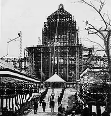Ante la proximidad de un plazo interno, el gobierno recurrió a Adolph Stegmueller, socio de Ende y Böckmann, y al arquitecto japonés Yoshii Shigenori para que diseñaran una estructura temporal. El edificio, una estructura de madera de dos pisos de estilo europeo, se inauguró en noviembre de 1890 en un solar de Hibiya.