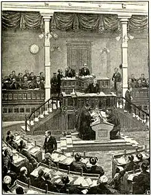 En 1898, el primer ministro Itō Hirobumi se entrevistó con el estadounidense Ralph Adams Cram, quien propuso un diseño más "oriental" para el edificio, con tejados de tejas y un gran recinto de muros y puertas. El proyecto de Cram nunca se pudo llevar a cabo debido a la crisis del gobierno de Itō que derivó en la disolución de su gobierno.