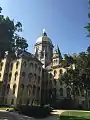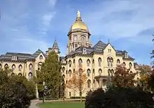 El Edificio de Administración Principal de la Universidad de Notre Dame [1] [2] [3](conocido como el Edificio Principal o la "Cúpula Dorada") alberga varias oficinas administrativas, incluida la Oficina del Presidente. En la parte superior del edificio se encuentra el Golden Dome, el hito más reconocible de la Universidad. Tres edificios fueron construidos en el sitio; el primero fue construido en 1843 y reemplazado por uno más grande en 1865, que se quemó en 1879, después de lo cual se erigió el tercer y actual edificio. El edificio alberga las oficinas administrativas de la Universidad, así como aulas, colecciones de arte y espacios de exposición. El edificio figura en el Registro Nacional de Lugares Históricos.
