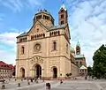 La Catedral de Speyer (también conocida como Mariendom ) en Speyer, Alemania, es una imponente basílica de arenisca roja y una de las iglesias románicas más grandes del mundo. La distintiva galería de columnas que la rodea y su imponente diseño de bóveda de triple pasillo influyeron en el desarrollo de la arquitectura románica en los siglos XI y XII.
