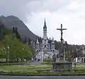 Hay notables similitudes en los relatos de las visiones reportadas que han llevado a la construcción de las iglesias. [25] [26] Dos de los casos en cuestión son las iglesias marianas más grandes de México y Francia, basadas en las apariciones marianas a San Juan Diego en Cerro del Tepeyac, (Guadalupe) México en 1531 y a Santa Bernadette Soubirous cuando niña en Lourdes en 1858. Ambos santos informaron sobre visiones en las que una dama milagrosa en una colina les pidió que pidieran a los sacerdotes locales que construyeran una capilla en ese lugar de la visión. Ambas visiones tenían una referencia a las rosas y llevaron a que se construyeran iglesias muy grandes en los sitios. [25] [26] Como Nuestra Señora de Lourdes en Francia, Nuestra Señora de Guadalupe es un importante símbolo católico en México. [27] Y al igual que el Santuario de Nuestra Señora de Lourdes en Francia, el complejo de la Basílica de Nuestra Señora de Guadalupe es una de las iglesias católicas más grandes y más visitadas de las Américas. [27]