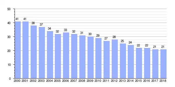 Gráfica de evolución demográfica de Edreira entre 2000 y 2018 |