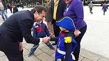 García Caffi saluda a un niño vestido de San Martín.