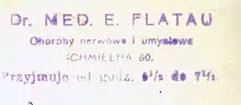 Además de la neurología Flatau era un psiquiatra. [21] [32] Irena Solska, famosa actriz polaca, describe en sus memorias que antes de actuar María, una mujer loca en Comedia no-divina de Zygmunt Krasinski en 1920 visitó la clínica psiquiátrica de Edward Flatau [33] Otro de sus pacientes era bien conocido poeta polaco Jan Lechoń. [34] [35] En la historia de Isaac Bashevis Singer "El Poder de las tinieblas" [36] se solicita Flatau para curar a los demonios. Extracto de la historia de Singer dice: El rumor se extendió rápidamente en Krochmalna y las calles de los alrededores que un dibbuk había asentado en el oído de Tzeitel, y que cantó Torá ... Un especialista de los nervios se interesó en el caso - Dr. Flatau, que era famoso no sólo en Polonia, sino en toda Europa y tal vez en América. Y un artículo sobre el caso apareció en un periódico. El autor basa su título de León Tolstói jugar "El poder de las tinieblas".
