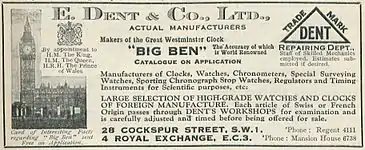 ![]() Anuncio de E. Dent & Co. Ltd. de 1931 |