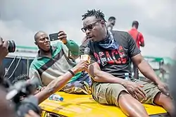 ![]() Eedris Abdulkareem en una protesta en el marco del End SARS en Lagos, Nigeria. | ||