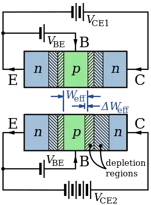 El Efecto Early, nombrado así en honor a su descubrimiento por James M. Early, es la variación en el grosor de la región de deplexión (depletion regions) base-colector, en un transistor BJT debido a la variación del voltaje de base a colector. Mientras exista una mayor polarización inversa a través de la unión colector-base la región de deplexión aumentará su tamaño, disminuyendo la cantidad de los portadores de carga en la base.