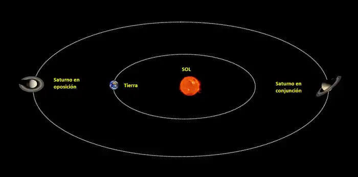 Apoyándose en esta hipótesis, el astrónomo alemán Hugo von Seeliger (1849-1924) postuló en 1887[6] que el efecto del incremento de brillo durante la oposición de Saturno con respecto a la Tierra era debido a la minimización de la sombra propia de las partículas que forman los anillos, favorablemente iluminadas para un observador situado en la Tierra cuando se encuentran en la citada fase de oposición. Un hecho que refuerza esta idea es que la apariencia del propio planeta Saturno no sufre este efecto, debido a que su superficie visible se corresponde con la de la esfera ocupada por su densa atmósfera, sobre la que la luz solar se refleja casi de forma perfectamente homogénea, independientemente de su posición con respecto a la Tierra.[7] De hecho, planetas con una densa atmósfera (como Venus) no presentan este fenómeno, que sí se produce con Marte (con una atmósfera mucho más tenue, y una superficie accidentada).