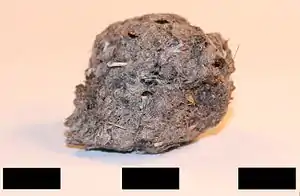 Las egagrópilas (conocidas en cetrería también como plumadas o pelotas) son bolas formadas por restos de alimentos no digeridos que regurgitan algunas aves carnívoras. Entiéndese por regurgitar al acto de expulsar por la boca, sin el esfuerzo ni las sacudidas de la emesis, algunos contenidos sólidos o líquidos del tubo digestivo. El contenido de cada egagrópila así expulsada depende de la dieta del ave, pero normalmente contienen huesos, piel, pelambre, exoesqueletos de insectos, materia vegetal indigerible por exceso de celulosa, plumas, uñas y dientes, que las aves no pueden digerir.[1] Son muy útiles en ornitología para saber el tipo de alimentación que estas llevan y en ecología para conocer las relaciones de predación. Suelen ser muy normales entre búhos, lechuzas, buitres y otras rapaces.