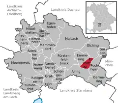 Se encuentra ubicado en la región de Alta Baviera, a poca distancia al oeste de la ciudad de Múnich —la capital del estado—.