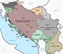 Las fuerzas alemanas entraron en Belgrado el 12 de abril, dos días después, Jonak y su EK habían llegado, donde fueron recibidos por Kraus, que había resistido el bombardeo de Belgrado en el sótano de la antigua embajada de Checoslovaquia. Al día siguiente, el resto del EG-Yugoslavia de Fuchs llegó a la capital. El joven rey Pedro y su gobierno huyeron del país el 15 de abril y las fuerzas yugoslavas se rindieron incondicionalmente dos días después. Ese día, Heydrich llegó a Belgrado y se reunió con Fuchs y el resto del personal del EG-Yugoslavia, incluidos Helm y Kraus. Heydrich explicó que Alemania y sus aliados estaban dividiendo Yugoslavia.[19] Parte del territorio yugoslavo fue anexionado por sus vecinos del Eje, Hungría, Bulgaria e Italia. Los alemanes habían diseñado y apoyado la creación del NDH, que comprendía aproximadamente la mayor parte de la Banovina de Croacia, junto con el resto de la actual Bosnia y Herzegovina y algunos territorios adyacentes.[20] Los italianos, húngaros y búlgaros ocuparon otras partes del territorio yugoslavo. Alemania no se anexionó ningún territorio yugoslavo, pero ocupó partes del norte de la actual Eslovenia y estableció tropas en la mitad norte del NDH. La parte de Eslovenia ocupada por los alemanes se dividió en dos áreas administrativas que se colocaron bajo la administración de los Gauleiters de los vecinos Reichsgau Kärnten y Reichsgau Steiermark.[21]