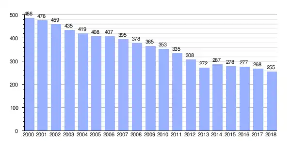 Gráfica de evolución demográfica de Eirón[2] entre 2000 y 2018 |