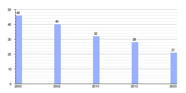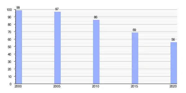 Gráfica de evolución demográfica de Eirexalba (parroquia) entre 2000 y 2020 |
