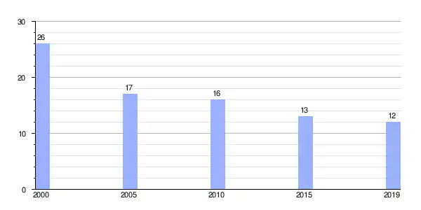 Gráfica de evolución demográfica de Eiriz entre 2000 y 2019 |