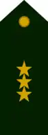 Capitán General1 | General de Ejército2 | General de División | General de Brigada | Coronel | Teniente Coronel | Mayor | Capitán | Teniente | Sub Teniente | ||||