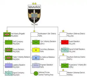 El Ejército estonio está estructurado según el principio de una fuerza de reserva que significa que la mayor parte de las fuerzas de defensa del Estado son las unidades en la reserva. Para un estado con pocos recursos humanos y económicos, una fuerza de reserva basada en la voluntad de defensa de los ciudadanos es la única forma viable de la defensa nacional.