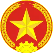 ![]() Insignia del Ejército Popular de Vietnam ![]() Bandera de EPV. El lema se traduce como "Decidido a ganar" | ||