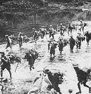El EPV se concibió por primera vez en septiembre de 1944 en la primera Conferencia Militar del Partido Revolucionario como Ejército de Liberación de Propaganda de Vietnam (Việt Nam Tuyên truyền Giải phóng Quân) para educar, reclutar y movilizar a los vietnamitas para crear un fuerza principal para expulsar al Colonial francés y la Ocupadores japoneses de Vietnam.[10] Bajo las directrices de Hồ Chí Minh, Võ Nguyên Giáp recibió la tarea de establecer las brigadas y el Ejército de Liberación de Propaganda de Vietnam nació el 22 de diciembre de 1944. La primera formación estaba integrada por treinta y un hombres y tres mujeres, armados con dos revólveres, diecisiete fusiles, una ametralladora ligera y catorce retrocargas de chispa.[11] Los agentes de la OSS de los Estados Unidos, dirigidos por Archimedes Patti, a quien a veces se hacía referencia como el primer instructor del EPV debido a su función, también habían proporcionado municiones. como inteligencia logística y equipo, y también ayudaron a entrenar a estos soldados, que luego se convirtió en la columna vertebral vital del ejército vietnamita posterior para luchar contra los ocupantes japoneses y las guerras futuras.
