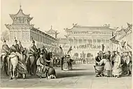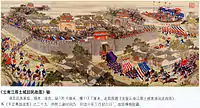 Después de derrotar a los remanentes de las fuerzas Ming, el Ejército de banderas manchú de aproximadamente 200,000 hombres en ese momento estaba dividido en partes iguales; la mitad fue designada como las Ocho Banderas Prohibidas ( chino : 禁 旅 八旗 , pinyin : jìnlǚ bāqí ) y estuvo estacionado en Beijing. Sirvió como la guarnición de la capital y la fuerza de ataque principal del gobierno Qing. El resto de las tropas de banderas se distribuyó para proteger ciudades clave en China. Estos fueron conocidos como el ejército de las Ocho Banderas Territorial ( chino simplificado : 驻防 八旗 ; chino tradicional : 駐防 八旗 ; pinyin : zhùfáng bāqí) . La corte manchú, muy consciente de su propia condición de minoría, reforzó una política estricta de segregación racial entre los manchú y los mongoles, de los chinos Han por temor a ser sinizados por estos últimos. Esta política se aplicaba directamente a las guarniciones de banderas, la mayoría de las cuales ocupaban una zona separada amurallada dentro de las ciudades en las que estaban estacionadas. En ciudades donde había limitaciones de espacio, como en Qingzhou , se construiría una nueva ciudad fortificada para albergar a las banderas, su guarnición y sus familias. Pekín la sede imperial, en la que el regente Dorgon hizo que la población china entera se trasladara forzosamente a los suburbios del sur, que se conoció como la "Ciudadela Exterior" ( chino : 外 城 ; pinyin :wàichéng ). La ciudad amurallada del norte llamada "Ciudadela interior" ( chino :內 城 ; pinyin : nèichéng ) fue dividida en porciones a las restantes ocho banderas Manchú , cada una responsable de proteger una sección de la Ciudadela interior que rodea el complejo del palacio de la Ciudad Prohibida[cita requerida]