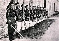 Finalmente, en diciembre de 1894, el gobierno de Qing tomó medidas concretas para reformar las instituciones militares y volver a entrenar unidades seleccionadas en ejercicios, tácticas y armamentos occidentalizados. Estas unidades se llamaron colectivamente los Nuevos Ejércitos. Los nuevos ejércitos ( chino tradicional :新軍, chino simplificado :新军; Pinyin : Xinjun, Manchú : Ice cooha ), más plenamente llamado el recién creado Ejército ( 新建陸軍 Xinjian Lujun ), fueron el cuerpo del ejército modernizado se formó bajo la dinastía Qing en diciembre de 1895, después de su derrota en la Primera Guerra Sino-Japonesa . El más exitoso de ellos fue el Ejército de Beiyang bajo la supervisión y el control general de un excomandante del Ejército Huai, el general Yuan Shikai , quien utilizó su posición para convertirse finalmente en presidente de la República de China y finalmente en emperador de China