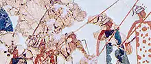 Pese a que existen muchas representaciones de carros, no se han hallado piezas reconocibles. [77] En las pinturas además de las ruedas de cuatro radios, se muestran pértigas o lanzas de yunta central.