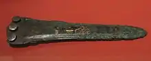 Las espadas iban colocadas en vainas que se sujetaban al hombro mediante una correa.[44] Por otra parte, a lo largo de todo el periodo micénico también se emplearon dagas o puñales.[50]
