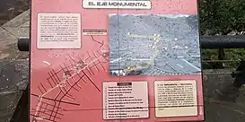 ![]() Panel informativo en el mirador del barrio de San Blas mostrando la ruta y extensión del eje monumental de la ciudad. | ||