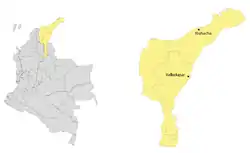 Este eje comprende los departamentos colombianos sobre el Caribe continental oriental, a saber Guajira, Magdalena y Cesar. Sus prácticas musicales han tenido un desarrollo durante el siglo XX y se han popularizado por toda Colombia y otros países de Latinoamérica para la segunda parte de este siglo y el XXI con artistas como Carlos Vives. El Festival de la Leyenda Vallenata representa el mayor evento dedicado a estas músicas. El 1 de diciembre de 2015 el ritmo insignia de este eje fue incluido en la lista de Patrimonio Cultural Inmaterial de la Humanidad, en la lista de salvaguardia urgente por la Unesco.[2]