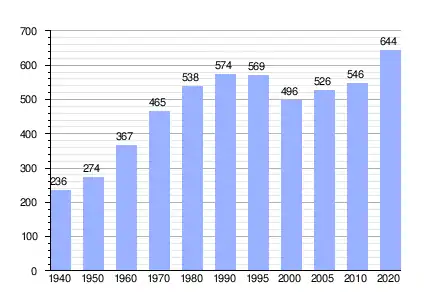Población de los censos y conteos del Instituto Nacional de Estadística y Geografía (INEGI).[6] |