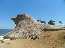 El Águila consta de una estructura artesanal de piedra, con cabeza de águila y cuerpo de delfín, carente de planos y diseño arquitectónico.
