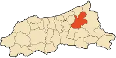 Se encuentra ubicado al noreste del país, junto a la costa del mar Mediterráneo y al este de la capital del país, Argel, y de la región de Cabilia.