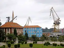 - Casa consistorial: Edificio inaugurado en 1881, su arquitectura se inspira en el tipo francés. En el frente y sobre los arcos de entrada, se añadieron unos relieves que representan el pasado del municipio, como la industria minera y a la construcción naval.[5]