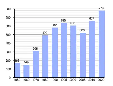 Población de los censos y conteos del Instituto Nacional de Estadística y Geografía (INEGI) de 1950 a 2010.[6] |
